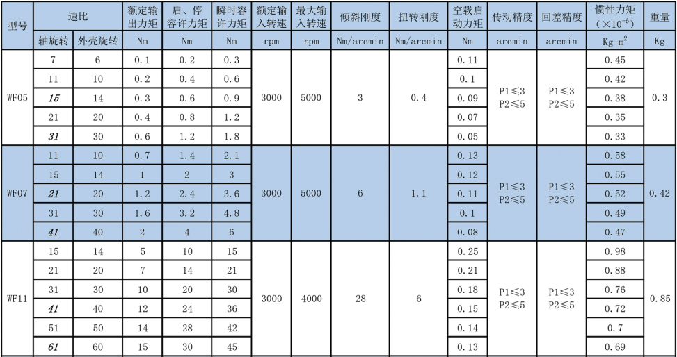 行星圓齒式減速機性能表: